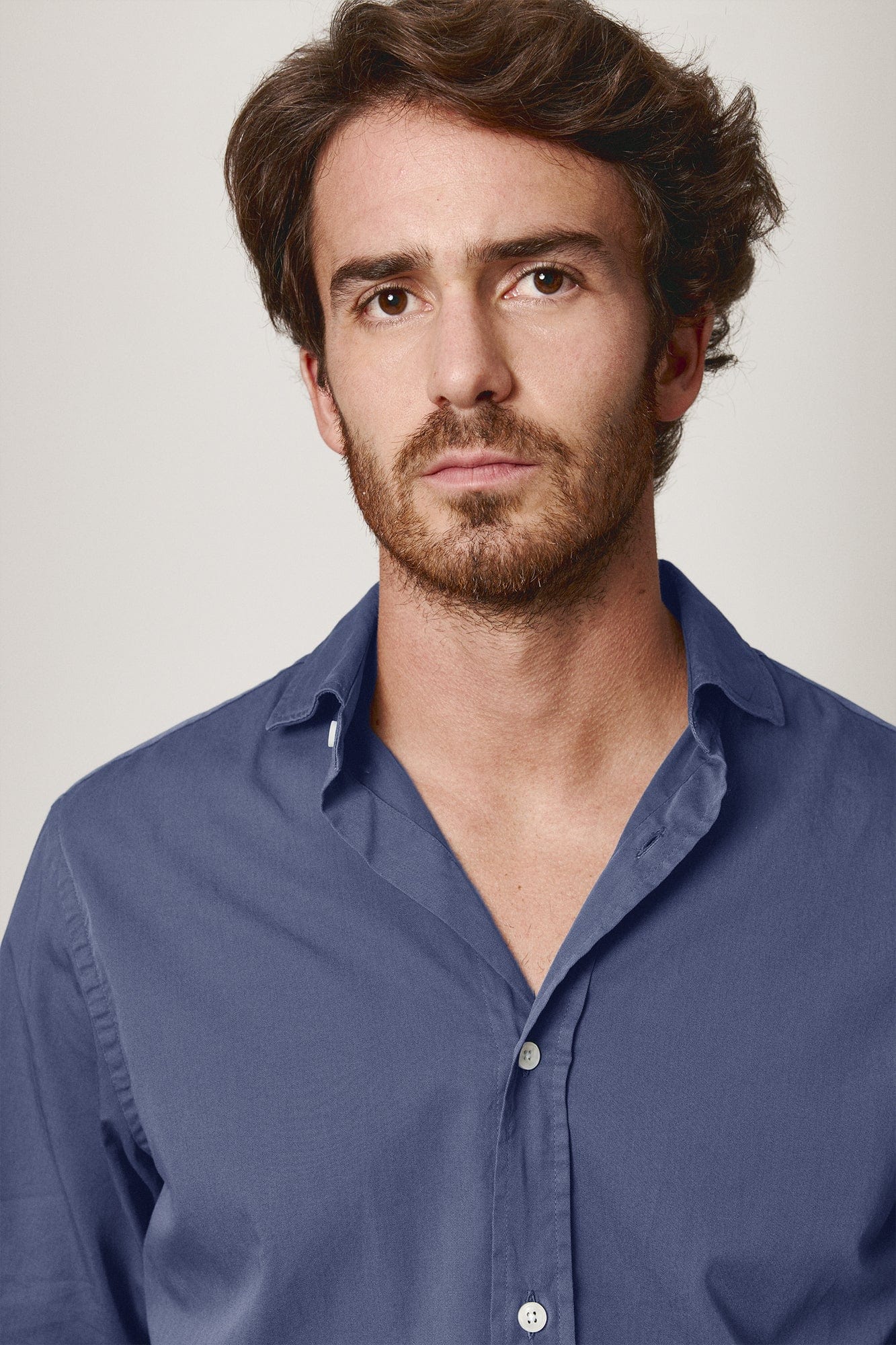 Camisa de sarga con cuello italiano. Nuestras camisas se han teñido con nuestros colores de temporada a medida para The Brubaker. Tanto la confección como nuestro patrón se revisan a mano para que cada camisa perdure en el tiempo.