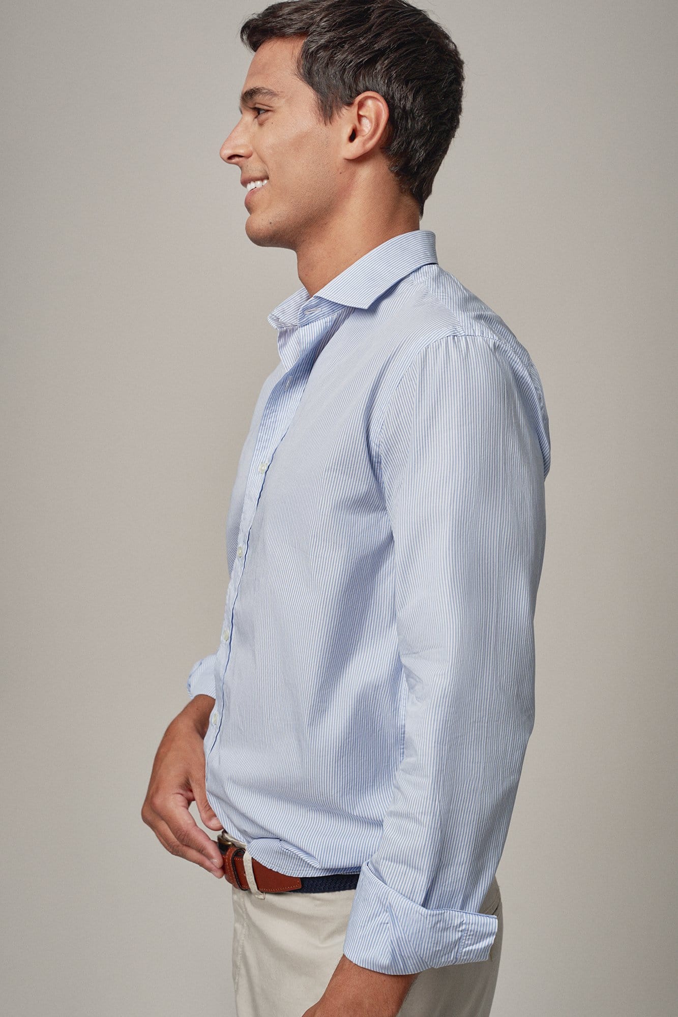 Fabricada con algodón hilado para transpirar y mantener la comodidad, esta camisa Popelín Mil Rayas se adapta a cualquier estilo.